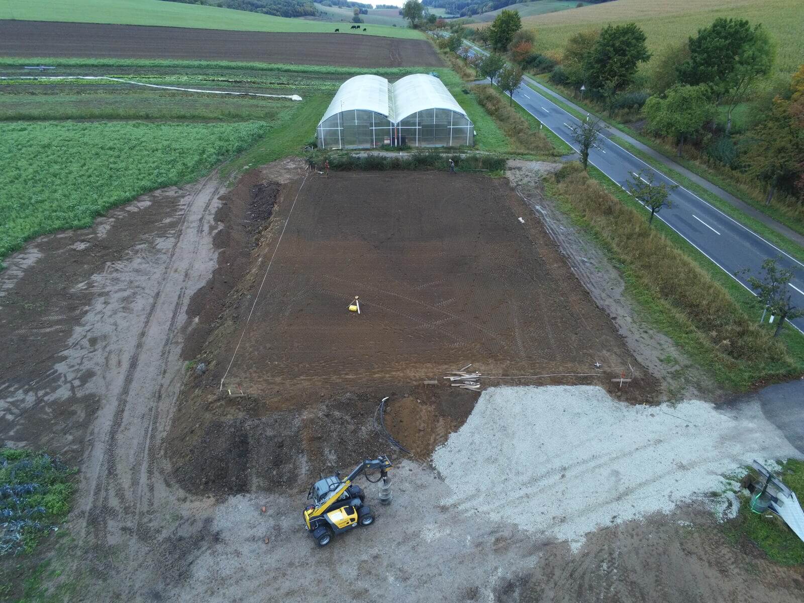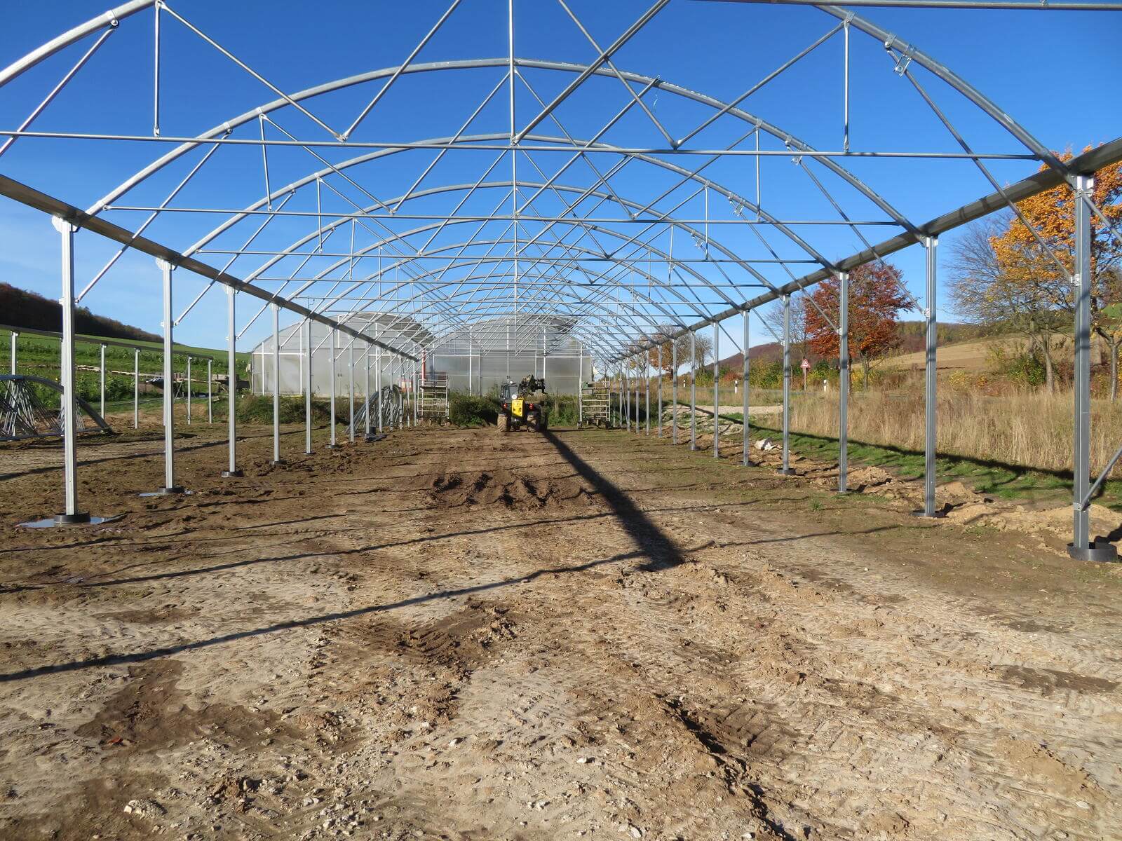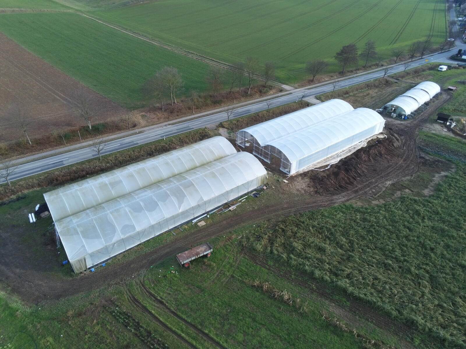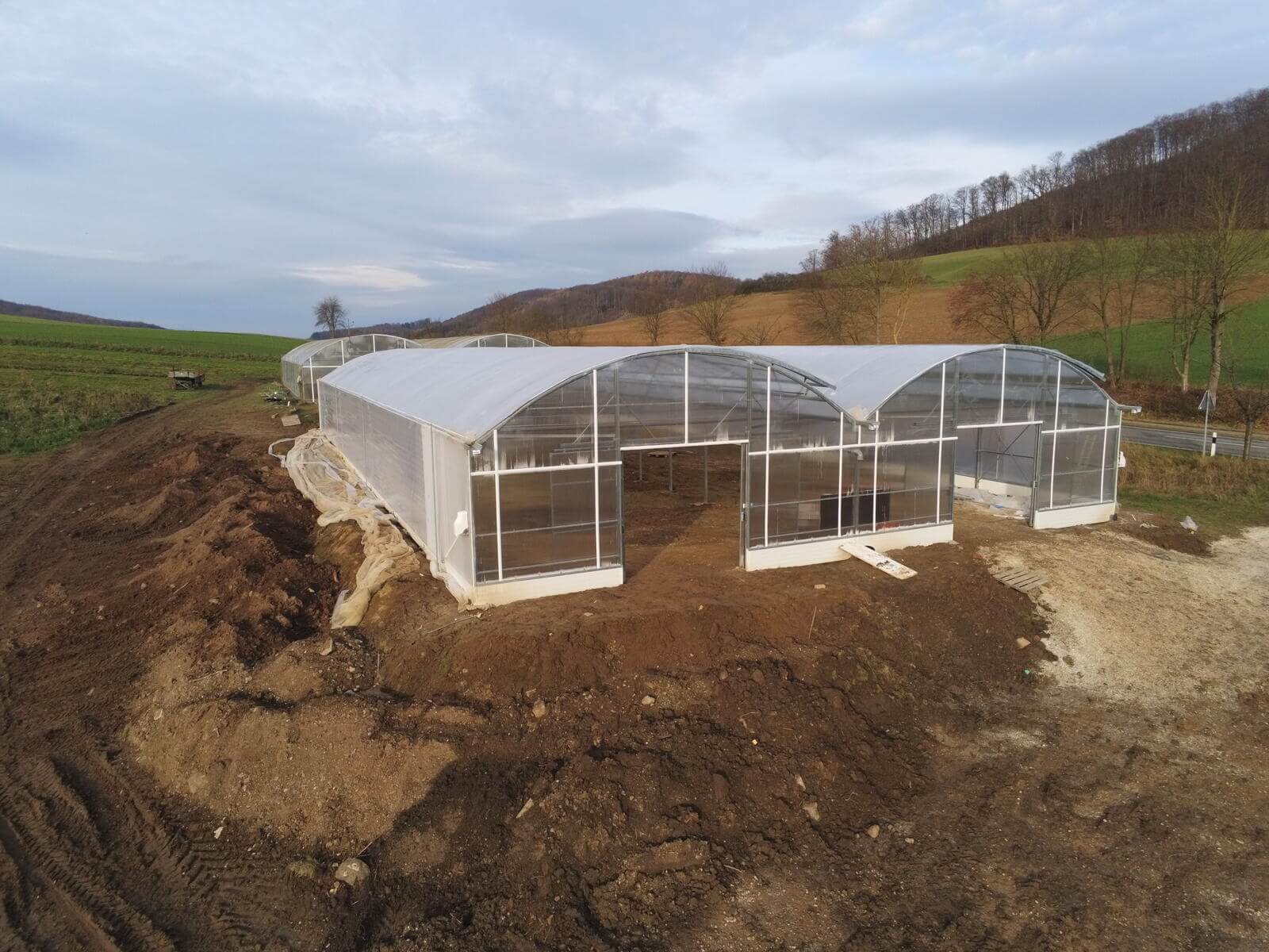 Neubau von einem Richel-Folienblock Typ 960R250ov90 – 2 Schiffe 9,60 m x 37,50m – Gemüsebau Bertram, Freden