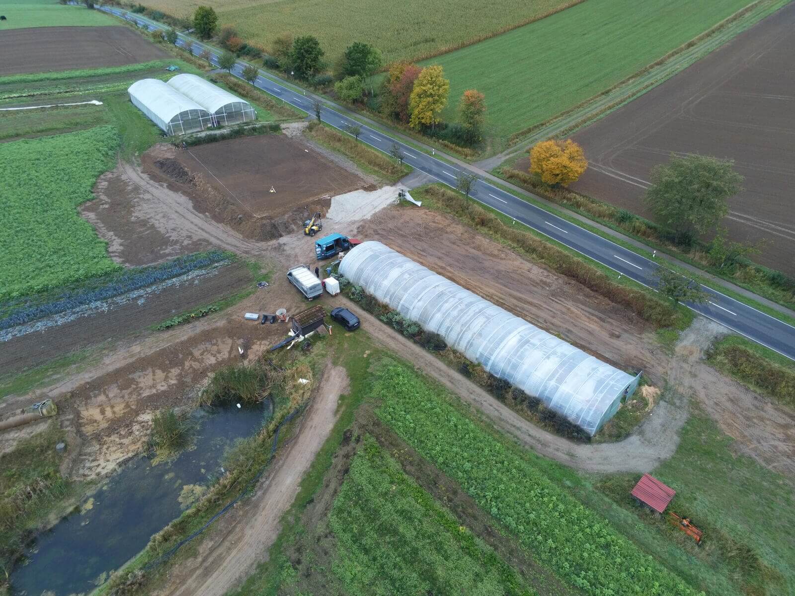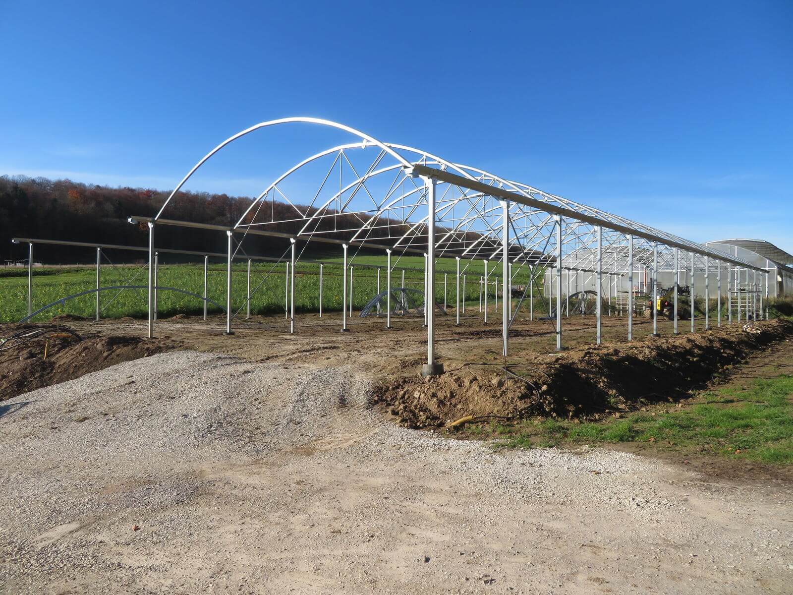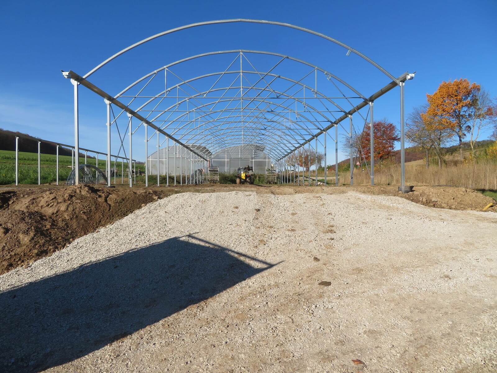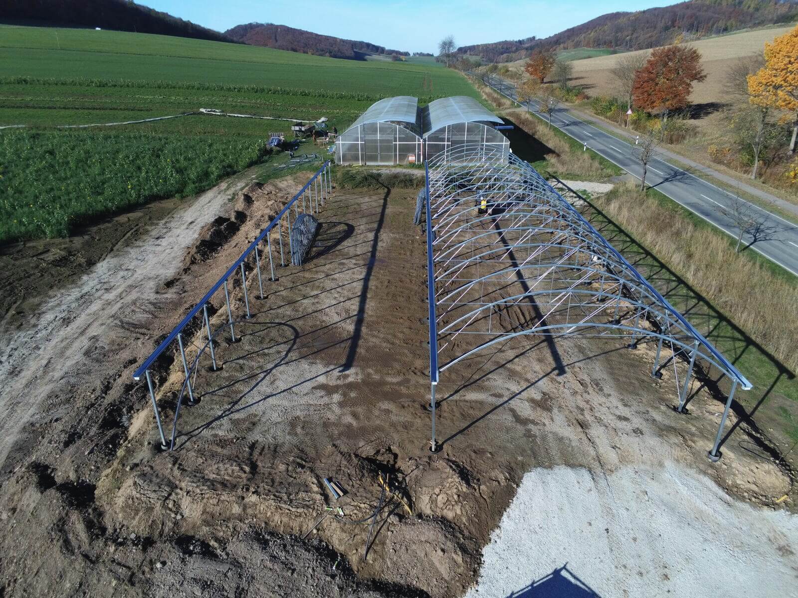 Neubau von einem Richel-Folienblock Typ 960R250ov90 – 2 Schiffe 9,60 m x 37,50m – Gemüsebau Bertram, Freden